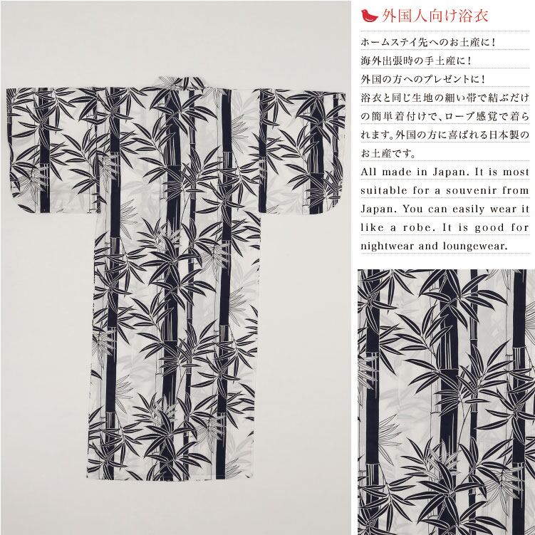 【外国人向け浴衣】【お土産】【プレゼント】海外のお友達へのお土産やプレゼントにピッタリ! 白地に紺の竹柄 日本製浴衣 レディース【日本のおみやげ】【日本のお土産】【外国へのお土産】【外人 浴衣】