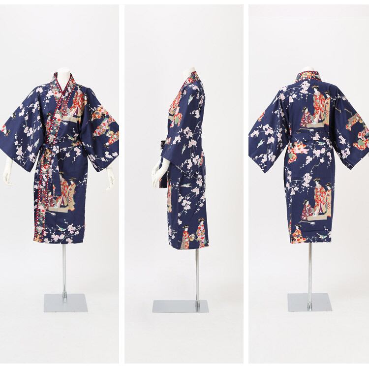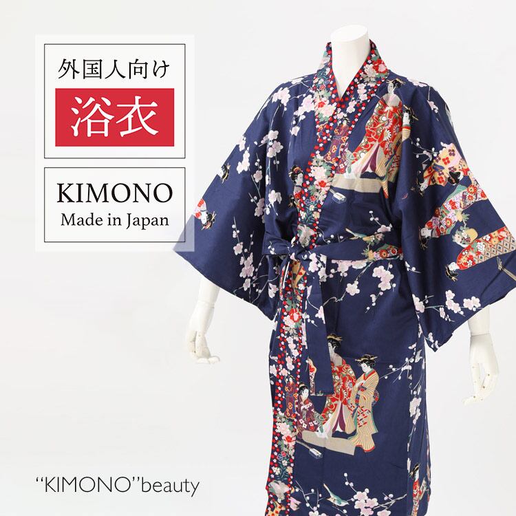 【外国人向け浴衣】【お土産】【プレゼント】海外のお友達へのお土産やプレゼントにピッタリ! 紺地に梅と姫 日本製浴衣 レディース HAPPI COAT【日本のおみやげ】【日本のお土産】【外国へのお土産】【外人 浴衣】