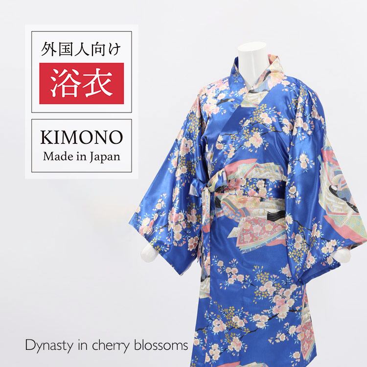 【外国人向け浴衣】【お土産】【プレゼント】海外のお友達へのお土産やプレゼントにピッタリ! 青地に桜と姫 日本製浴衣 レディース【日本のおみやげ】【日本のお土産】【外国へのお土産】【外人 浴衣】