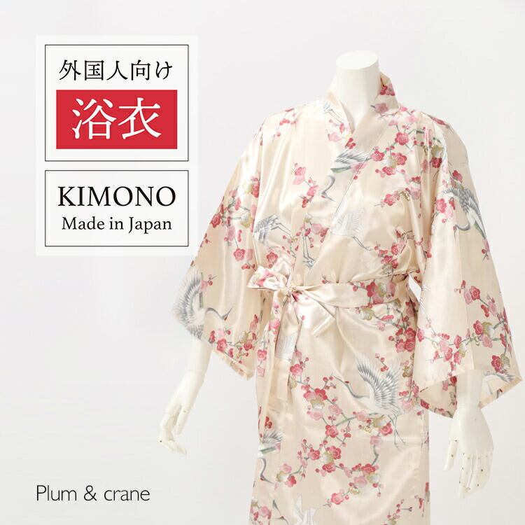 【外国人向け浴衣】【お土産】【プレゼント】海外のお友達へのお土産やプレゼントにピッタリ! 白地に梅と鶴 日本製浴衣 レディース HAPPI COAT【日本のおみやげ】【日本のお土産】【外国へのお土産】【外人 浴衣】