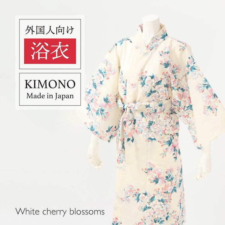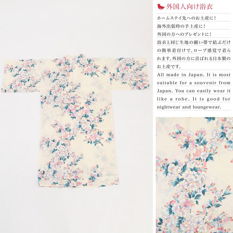 【外国人向け浴衣】【お土産】【プレゼント】海外のお友達へのお土産やプレゼントにピッタリ! クリーム地に桜 日本製浴衣 レディース HAPPI COAT【日本のおみやげ】【日本のお土産】【外国へのお土産】【外人 浴衣】