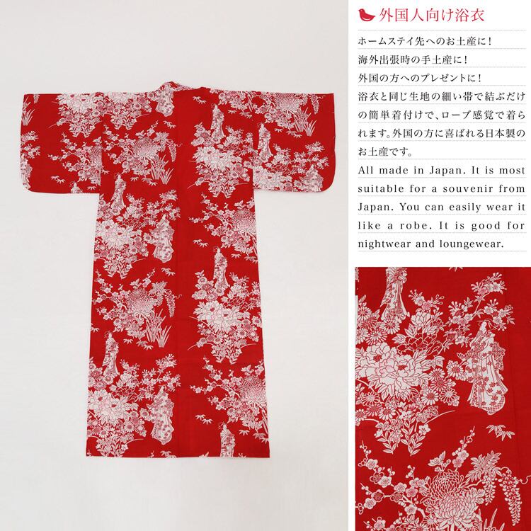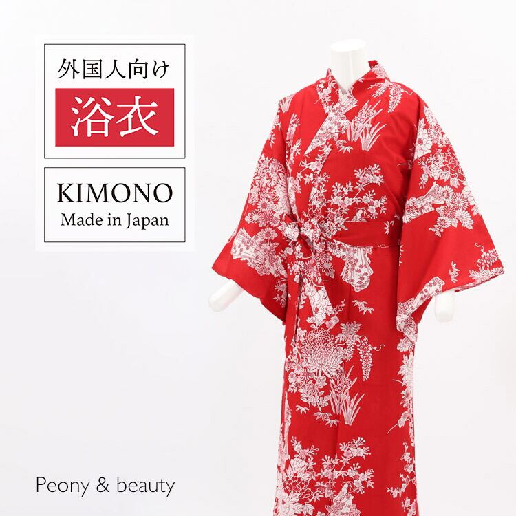 【外国人向け浴衣】【お土産】【プレゼント】海外のお友達へのお土産やプレゼントにピッタリ! 赤地に牡丹柄 日本製浴衣 レディース【日本のおみやげ】【日本のお土産】【外国へのお土産】【外人 浴衣】