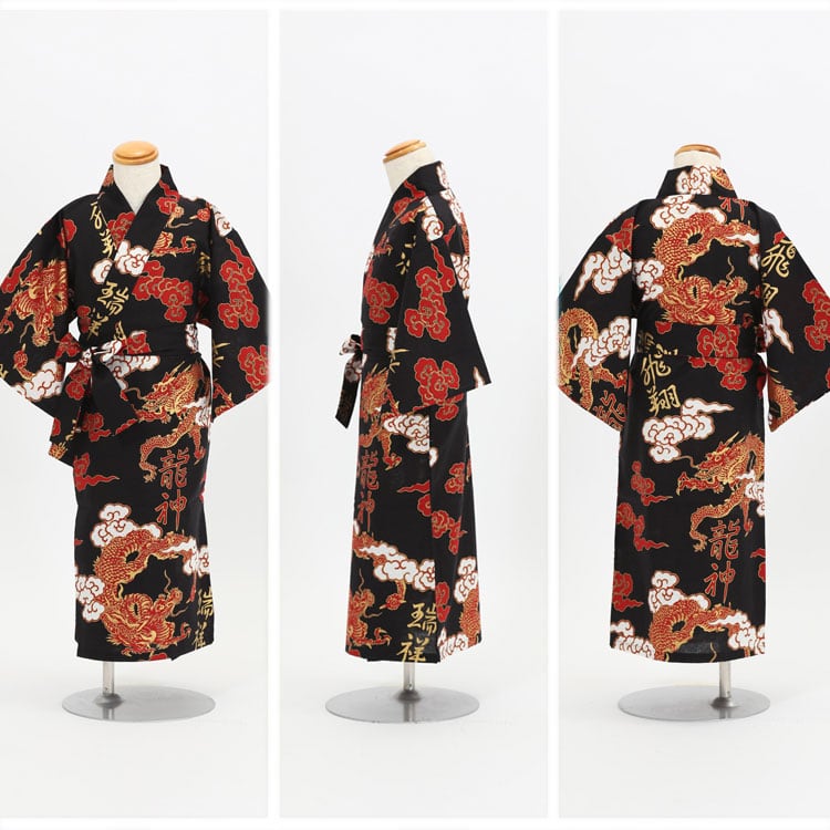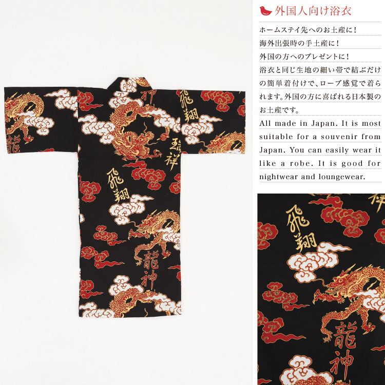【外国人向け浴衣】【キッズサイズ】【1〜2歳サイズ】【お土産】【プレゼント】海外のお友達へのお土産やプレゼントにピッタリ! 黒地に赤の龍柄 日本製浴衣 子供用【日本のおみやげ】【日本のお土産】【外国へのお土産】【外人 浴衣】