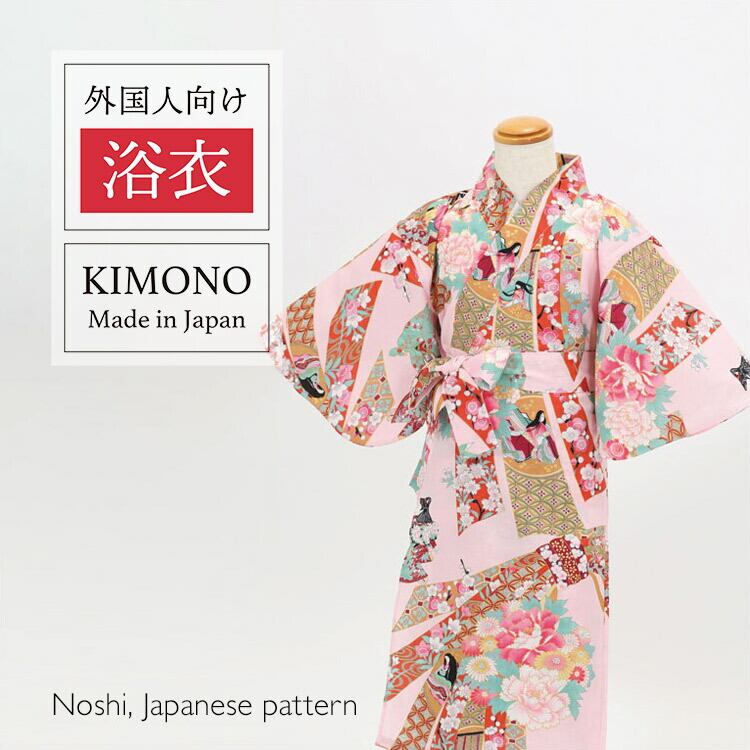 【外国人向け浴衣】【キッズサイズ】【1〜2歳サイズ】【お土産】【プレゼント】海外のお友達へのお土産やプレゼントにピッタリ! ピンクに熨斗柄 日本製浴衣 子供用【日本のおみやげ】【日本のお土産】【外国へのお土産】【外人 浴衣】