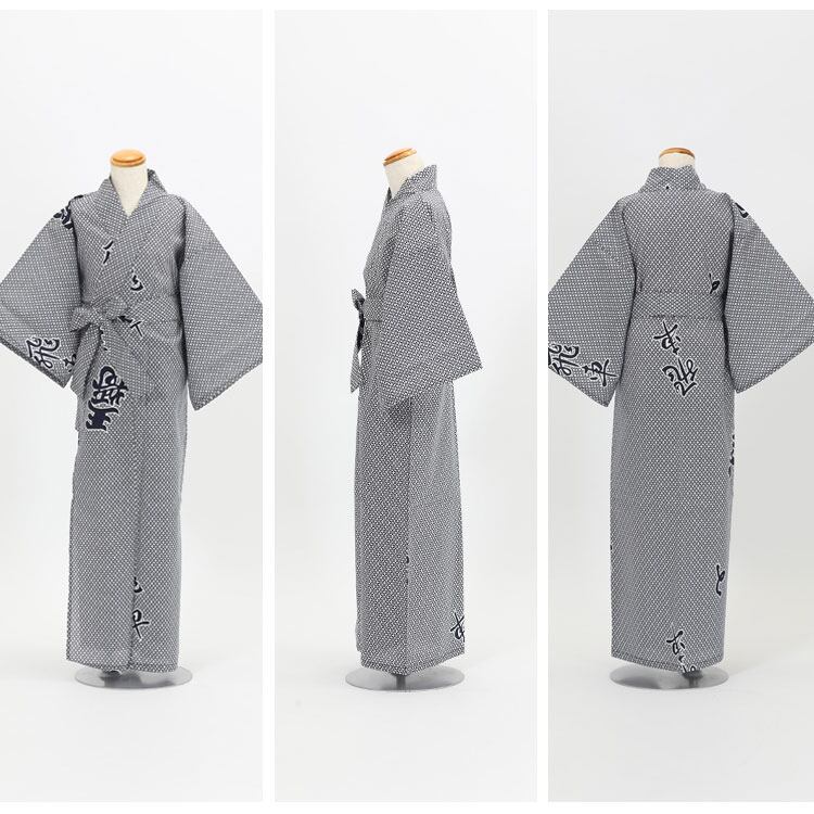 【外国人向け浴衣】【キッズサイズ】【5〜6歳サイズ】【お土産】【プレゼント】海外のお友達へのお土産やプレゼントにピッタリ! グレー地に漢字柄 日本製浴衣 子供用【日本のおみやげ】【日本のお土産】【外国へのお土産】【外人 浴衣】